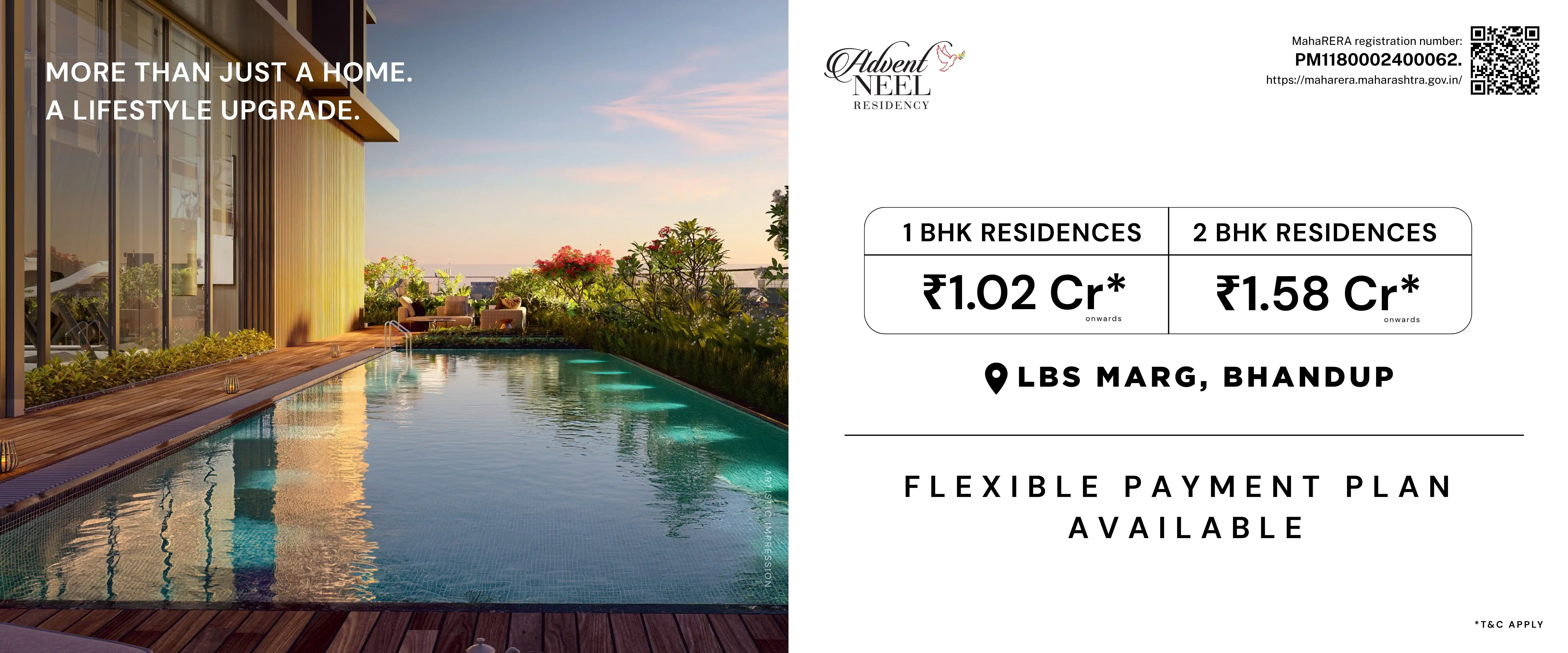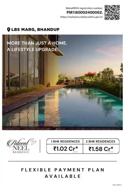 Welcome to Advent Neel Residency, a modern residential address near LBS Marg in Bhandup (W) offering thoughtfully crafted 1 & 2 BHK residences for comfort, convenience, and elevated urban living. Here, every detail is crafted to enhance your lifestyle - creating a home that is warm, inviting, and built to last for generations.